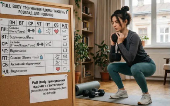 Full Body тренування вдома з гантелями: розклад на тиждень для новачків